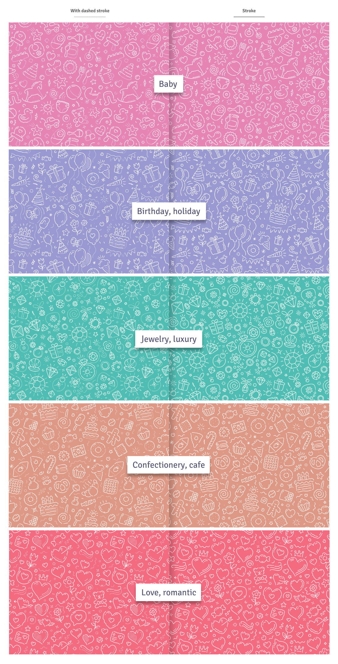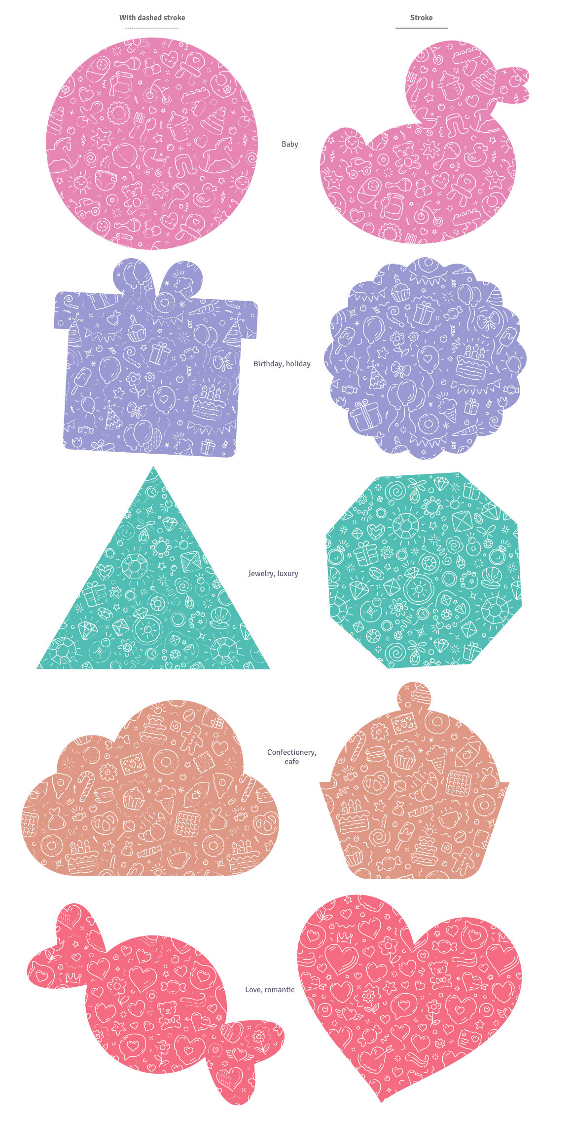 5 themes: Baby, Birthday & Holiday, Jewelry & Luxury, Confectionery & Cafe, Love & Romantic